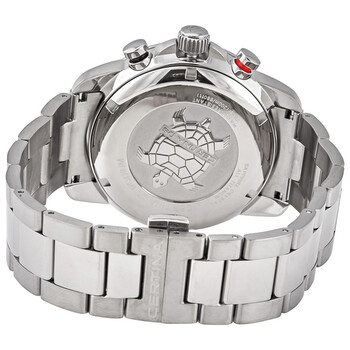 Titanium case with a titanium bracelet. Fixed titanium bezel showing tachymeter markings. Blue dial with luminous silver-tone hands and index hour markers. Arabic numerals mark the 3, 9 and 12 o'clock positions. Minute markers. 1/100 seconds markers around the outer rim. Dial Type: Analog. Date display at the 6 o'clock position. Chronograph - three sub-dials displaying: 60 second, 30 minute and 12 hours. Quartz movement. Scratch resistant sapphire crystal. Screw down crown. Solid case back. Round case shape. Case size: 44 mm. Case thickness: 13.25 mm. Band width: 22 mm. Butterfly clasp. Water resistant at 200 meters / 660 feet. Functions: chronograph, tachymeter, date, hour, minute, second. Casual watch style. Watch label: Swiss Made. Certina DS Podium Chronograph Quartz Blue Dial Men's Watch C001.647.44.047.00.