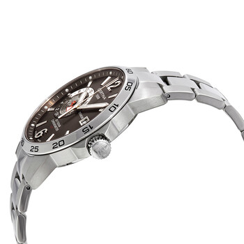 Grey titanium case with a grey titanium bracelet. Fixed arabic numeral grey titanium bezel. Grey dial with silver-tone hands and Arabic numeral and index hour markers. Minute markers around the outer rim. Dial Type: Analog. Luminescent hands. Date display at the 3 o'clock position. One subdial displaying: 24 hour. ETA Caliber F06.421 quartz movement. Scratch resistant sapphire crystal. Solid case back. Round case shape, case size: 41 mm, case thickness: 10.4 mm. Butterfly clasp. Water resistant at 100 meters / 330 feet. Functions: date, GMT, second time zone, hour, minute, second, battery eol indicator. Ds Podium Series. Casual watch style. Watch label: Swiss Made. Certina DS Podium Grey Dial Men's Watch C034.455.44.087.00.