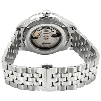 Stainless steel case with a stainless steel bracelet. Fixed stainless steel bezel. Black dial with silver-tone hands and index hour markers. Minute markers around the outer rim. Dial Type: Analog. Date display at the 6 o'clock position. Powermatic 80.651 automatic movement with an 80-hour power reserve. Scratch resistant sapphire crystal. Transparent case back. Round case shape, case size: 41 mm, case thickness: 11.9 mm. Band width: 20 mm. Fold over clasp. Water resistant at 100 meters / 330 feet. Functions: date, hour, minute, second. Ds-1 Big Date Series. Luxury watch style. Watch label: Swiss Made. Certina DS-1 Big Date Automatic Black Dial Men's Watch C029.426.11.051.00.