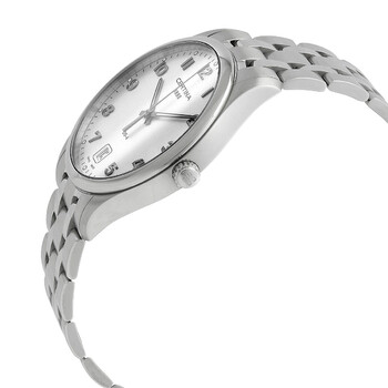 Stainless steel case with a stainless steel bracelet. Fixed bezel. Silver dial with luminous hands and Arabic numeral hour markers. Dial Type: Analog. Luminescent hands. Date at 6 o'clock position. Quartz movement. Scratch resistant sapphire crystal. Solid case back. Case diameter: 40 mm. Round case shape. Deployment with push button clasp. Water resistant at 100 meters / 330 feet. Functions: date, hour, minute, second. Watch label: Swiss Made. Certina DS-4 Silver Dial Men's Stainless Steel Watch C022.610.11.032.00.