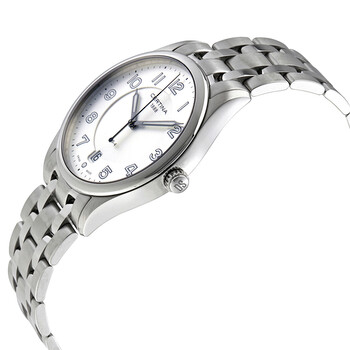 Stainless steel case with a stainless steel bracelet. Fixed stainless steel bezel. Silver dial with luminous silver-tone hands and Arabic numeral hour markers. Minute markers around the outer rim. Dial Type: Analog. Luminescent hands and markers. Date display at the 6 o'clock position. ETA caliber E64.111 quartz movement. Scratch resistant sapphire crystal. Pull / push crown. Solid case back. Round case shape, case size: 37 mm, case thickness: 7 mm. Band width: 18 mm. Butterfly clasp. Water resistant at 100 meters / 330 feet. Functions: date, hour, minute, second. Dress watch style. Watch label: Swiss Made. Certina DS-4 Silver Dial Men's Watch C022.410.11.030.00.