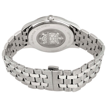316L stainless steel case with a 316L stainless stee bracelet. Fixed 316L stainless steel bezel. Black dial with luminous silver-tone hands and index hour markers. Minute markers around the outer rim. Dial Type: Analog. Luminescent hands. Date display at the 3 o'clock position. Quartz movement. Scratch resistant sapphire crystal. Pull / push crown. Solid case back. Round case shape. Case size: 40.2 mm. Case thickness: 8.7 mm. Band width: 20 mm. Fold over clasp with a safety release. Water resistant at 100 meters / 330 feet. Functions: date, hour, minute, second, chronometer, precidrivetm. DS-8 Series. Dress watch style. Watch label: Swiss Made. Certina DS-8 Chronometer Quartz Black Dial Men's Watch C0334511105100.