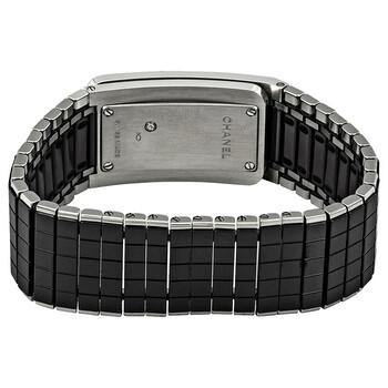 Silver-tone stainless steel case with a steel bracelet with black (highly resistant) ceramic links. Fixed stainless steel bezel. Black lacquered set with a ssngle diamond dial with silver-tone hands. No markers. Dial Type: Analog. Quartz movement. Scratch resistant sapphire crystal. Solid case back. Rectangle case shape. Case dimensions: 38.1 mm x 21.5 mm. Ccase thickness: 7.8 mm. Mademoiselle turnlock clasp. Water resistant at 30 meters / 100 feet. Functions: hour, minute. Additional Info: Dial set with 1 princess-cut diamond (~0.05 ct). Code Coco Series. Luxury watch style. Watch label: Swiss Made. Chanel Black Code Coco Black Diamond Dial Ladies Steel and Ceramic Watch H5147.
