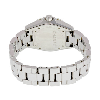 Titanium ceramic case with a titanium ceramic bracelet. Fixed titanium ceramic bezel set with 46 diamonds. Pink dial with silver-tone hands and diamond hour markers. Arabic numerals mark the 3, 6, 9 and 12 o'clock positions. Minute markers around an inner ring. Dial Type: Analog. Luminescent hands and markers. Automatic movement with a 42-hour power reserve. Scratch resistant sapphire crystal. Pull / push crown. Solid case back. Case size: 38 mm. Case thickness: 11.3 mm. Round case shape. Triple fold over clasp. Water resistant at 50 meters / 165 feet. Functions: hour, minute, second. Luxury watch style. Watch label: Swiss Made. Chanel J12 Chromatic Diamond Pink Dial Titanium Ceramic Ladies Watch H2564.