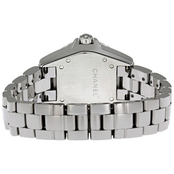 Titanium ceramic case with a titanium ceramic bracelet. Fixed titanium ceramic bezel set with 53 diamond (0.96 carats). Greyish titanium dial with rhodium-plated mirror-polished hands and diamond hour markers. Rhodium-plated Arabic numerals mark the 3, 6, 9 and 12 o'clock positions. Quartz movement. Scratch resistant mineral crystal. Screw down crown. Solid case back. Case diameter: 33 mm. Case thickness: 12 mm. Steel triple folding clasp. Water resistant at 50 meters (165 feet). Functions: hours, minutes, seconds. Chanel J12 Chromatic Diamond Quartz Watch H2565.