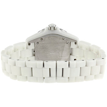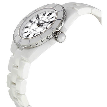 White ceramic case with a white ceramic bracelet. Unidirectional rotating stainless steel bezel with a white ceramic inlay. White dial with luminous black hands and black Arabic numeral hour markers. Minute markers on the outer rim. Luminescent hands and dial markers. Date display between the 4 and 5 o'clock positions. Automatic movement with a 42-hour power reserve. Scratch resistant sapphire crystal. Screw down crown. Solid case back. Case diameter: 38 mm. Case thickness: 11mm. Hidden deployment clasp. Water resistant at 200 meters / 660 feet. Functions: hours, minutes, seconds, date. Chanel J12 White Automatic White Dial White Ceramic Watch H0970