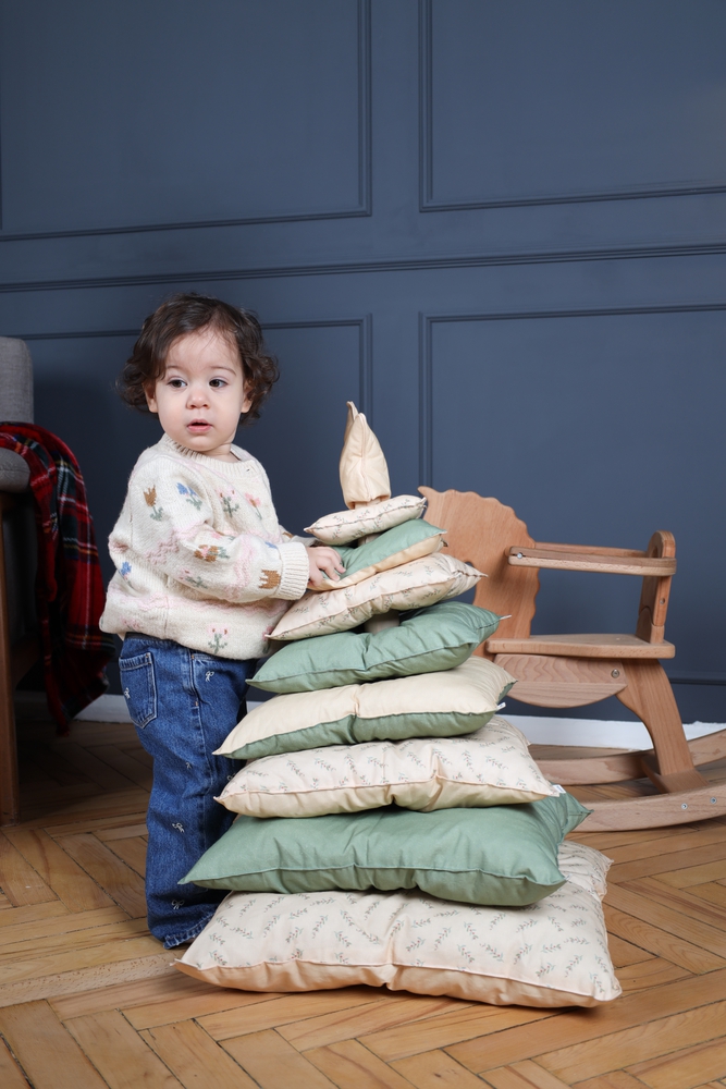 ააწყე შენით ჩიკიტაის ეს ხელნაკეთი ასაწყობი ბალიშების პირამიდა. შეგიძლიათ გამოიყენოთ ბავშვებისთვის პუფებადაც. იდეალურია 12+ თვიდან. დამზადებულია 100% ორგანული ბამბისაგან (GOTS Certified), ხოლო შიგთავსი 100% ხელოვნური ბამბისაგან (OEKO-TEX® Standard 100 Certified). ირეცხება ხელით, 30 გრადუსზე.