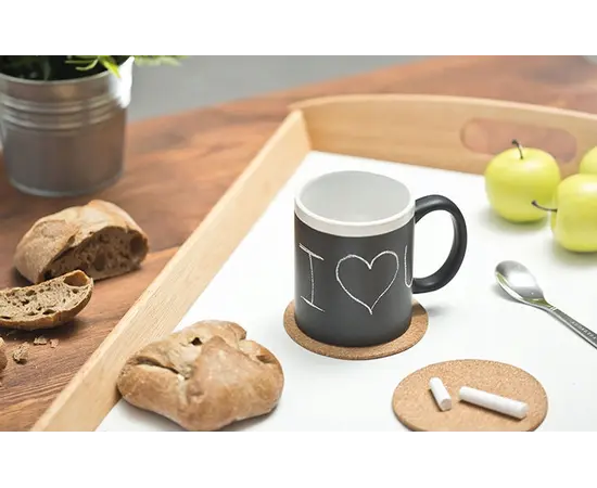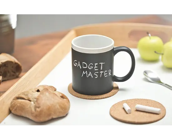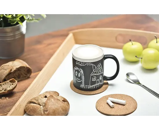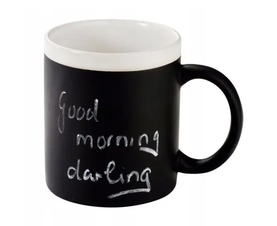 ფინჯანი დაფარულია სპეციალური მასალით, რომელიც საშუალებას გაძლევთ დაწეროთ მასზე, როგორც დაფაზე და წაშალოთ უპრობლემოდ დარჩენილი მესიჯები.
