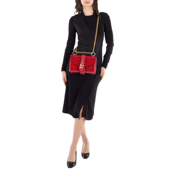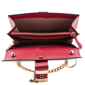 Chloe Ladies Shoulder Bag. SKU: CHC19WS206A87634. Color: Dusky Red. Size: W9.4" x H8.7". Chloe Aby Chain Shoulder Bag. This Aby Chain shoulder bag is made from crafted crocodile-effect leather, featuring a gold-tone chain strap, a foldover top with snap closure, an internal zipped pocket, and a signature logo padlock embellishment.