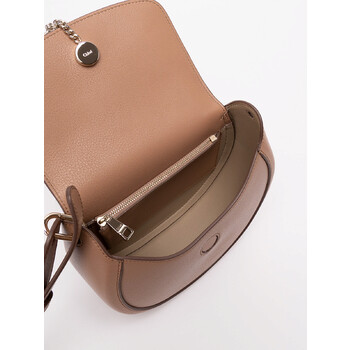 Chloe Ladies Crossbody. Arlene series. SKU: CHC23AS141K585. Color: Woodrose. Size: 21.5 x 15.5 x 7.5 cm. Crafted from calf leather, this bag features a logo stamp on the front and a foldover top with magnetic fastening for easy access. It includes an adjustable, detachable shoulder strap for versatile carrying options. The interior offers a zip-fastening pocket for organization, along with a spacious main compartment. The bag is designed with signature O-ring hardware and a saddle silhouette, finished with a gold foil logo stamped on the front flap for a sophisticated touch. Calf Leather 100% Made in Italy.