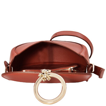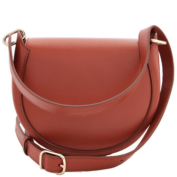 Brand: Chloe. SKU: CHC23AS141J3884. Barcode: 7614027047004. Color: Autumn Leaf. Chloe Arlene Small Ring Half-Moon Crossbody Bag. Crafted from calf leather, this bag features a logo stamp on the front and a foldover top with magnetic fastening for easy access. It includes an adjustable, detachable shoulder strap for versatile carrying options. The interior offers a zip-fastening pocket for organization, along with a spacious main compartment. The bag is designed with signature O-ring hardware and a saddle silhouette, finished with a gold foil logo stamped on the front flap for a sophisticated touch. Calf Leather 100% Made in Italy.