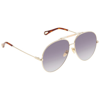 Chloe Sunglasses. Series number: CH0113S. Color code: 001. Shape: Pilot. Lens Width: 62 mm. Lens Bridge: 13 mm. Arm Length: 145 mm. 100% UV protection. Frame Material: Metal. Frame Color: Gold. Lenses Type: Blue. Rim Style: Full-Rim. UPC/EAN code: 889652371375. Chloe Blue Pilot Ladies Sunglasses CH0113S 001 62.