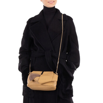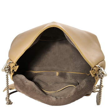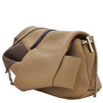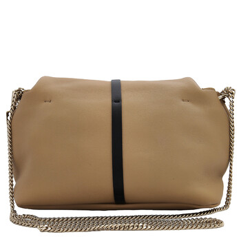 Chloe Ladies Crossbody. SKU: CHC24SS315J58272. Barcode: 7614027229097. Color: Cream/Brown. Size: Width: 10.2" (26 cm) x Height: 4.7" (12 cm) x Depth: 4.7" (12 cm). Chloe Lacey Small Crossbody Bag With Chain. Crafted from nappa lambskin, this bag features a flap with a metal piece closure, a single main compartment, and an inside flat pocket. It has a removable chain strap and a slouchy silhouette, highlighted by an oversized, supple knot on the front flap.