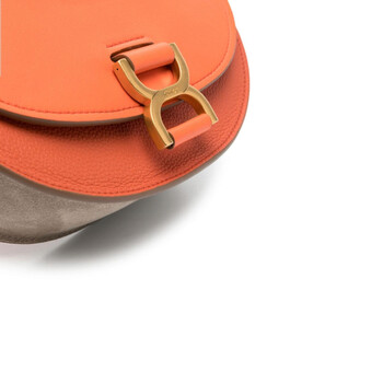 Chloe Ladies Shoulder Bag. SKU: CHC24SS604M52848. Material: Calfskin;Lambskin;Nappa leather;Suede. Color: Orange. Size: W:22.5cm x H:15cm x D:7cm. Chloe Marcie Chain Flap Leaather Tote Bag. This tote features a smooth grain and pebbled texture, with a detachable chain-link shoulder strap and leather top handles. It has a foldover top with a logo plaque, a main compartment, an internal slip pocket, an internal logo stamp, concealed magnetic fastening, and gold-tone hardware. Outer: 40% Nappa Leather, 30% Calfskin, 30% Calf Suede, Lining: 100% Lamb Skin. Made in Italy.
