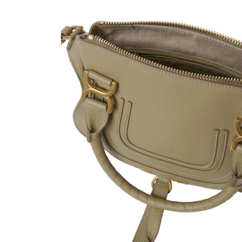 Chloe Ladies Top Handle Bag. SKU: CHC22AS628I3138I. Material: Calfskin;Linen. Color: Green. Size: W:30cm x H:23cm x D:9cm. Chloe Marcie Grained Leather Purse. This purse includes a roomy compartment, a front slip pocket hidden by a flap, an internal zippered pocket, a removable leather strap, and antique gold finishing.
