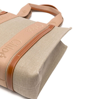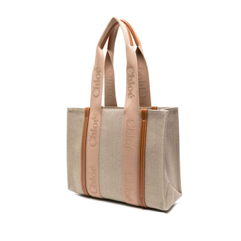 Chloe Ladies Shoulder Bag. SKU: CHC23AS383L17275. Material: Leather. Color: Beige. Size: W:37cm x H:26cm x D:12cm. Chloe Medium Woody Tote Leather Bag. This tote bag features leather trim, a signature Woody ribbon, an open top, two top handles, a main compartment, an internal logo patch, an internal slip pocket, and a canvas lining. 100% leather.