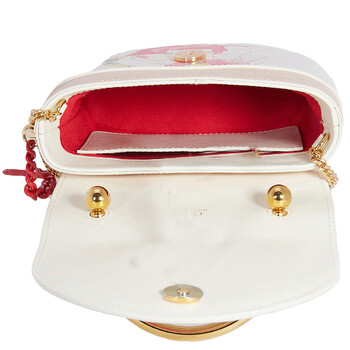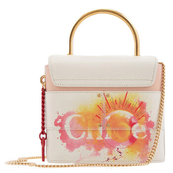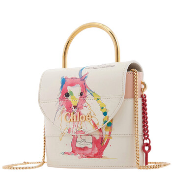 Chloe Ladies Shoulder Bag. SKU: CHC20SS220C56119. Color: Natural White. Chloe's 'Aby Lock' bag, crafted in Italy, features leather adorned with delicate watercolor illustrations on both sides. It boasts a curved gold handle and is elegantly accented with the brand's signature lacquered chain and key. 100% Leather. Made in Italy.