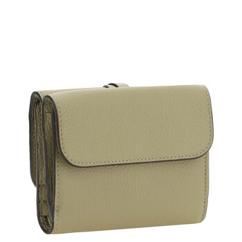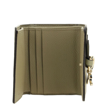 Chloe Ladies Wallets. SKU: CHC21WP945F5738I. Color: Green. Size: W: 4.3" x H: 3.5" x D: 1.6". Chloe Small Alphabet Tri-Fold Wallet. This tri-fold wallet is crafted from grained and shiny calfskin, featuring a front adorned with a knotted link and Chloe-designed golden initial charms. It offers multiple card slots, including 6 card slots, 1 flat pocket, and 1 bill compartment for organized storage. 100% Calfskin.