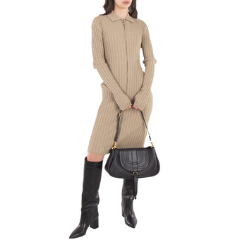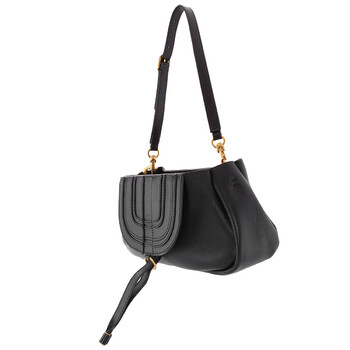Chloe Ladies Shoulder Bag. Marcie series. SKU: CHC23US601K280. Color: Black. Size: 29.5 x 15.5 x 6.5 cm. The Chloe Marcie bag in black leather combines bohemian elegance with timeless craftsmanship. Featuring signature curved saddle stitching, gold-tone hardware, and an adjustable shoulder strap, this stylish handbag is both practical and sophisticated. The soft, grained leather and front flap detailing add to its luxurious appeal, making it a versatile accessory for any wardrobe. 100% Leather.