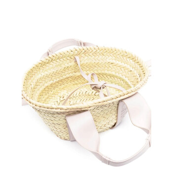Chloe Ladies Tote. Sense series. SKU: CHC23SS304J66084. Color: Wild Grey. Size: W: 11.4" x H: 6.2" x D: 6.2". Chloe Small Sense Raffia Tote Bag. The Sense tote features raffia construction with logo-tape detailing, an adjustable shoulder strap, two top handles, an open top with an internal tie fastening, and a spacious main compartment. Outer: Calf Leather 100%, Raffia 100%.