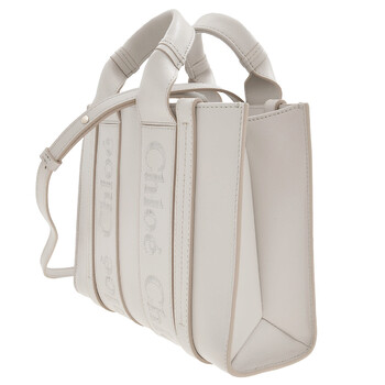 Chloe Ladies Tote. Woody series. SKU: CHC23US397I60084. Color: Wild Grey. Size: 26.5 cm x 20 cm x 8 cm. Chloe Small Woody Logo Tote Bag. Crafted from smooth grain calf leather, this Woody bag features a main compartment, detachable shoulder strap, circular top handles and finished with an embroidered logo to the front. Calf Leather 100%. Made in Italy.