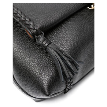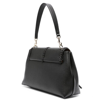 Chloe Ladies Shoulder Bag. SKU: CHC23US569K15-Black. Material: Calfskin. Closure Type: Flap. Color: Black. Size: W: 34cm x H: 24cm x D: 12cm. Chloe Soft Leather Penelope Shoulder Bag. Shoulder bag with an engraved logo and internal logo stamp crafted from Calf leather. It features braid detailing, silver-tone hardware, and a single top handle. The foldover top has a magnetic fastening, while the adjustable, detachable shoulder strap offers versatility. The bag includes a spacious main compartment. Outer: Calf Leather 100%, 100% Fabric. Made in Italy.