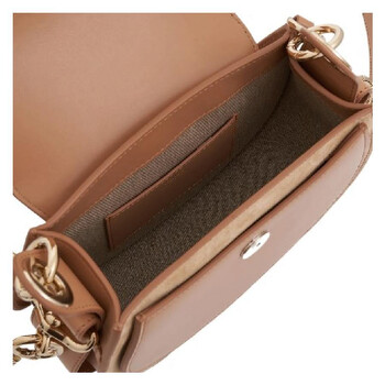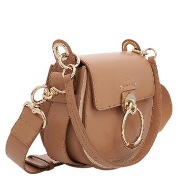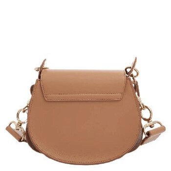Chloe Ladies Shoulder Bag. SKU: CHC22SS153G3126X. Color: Beige. Size: W: 7.9" x H: 6.7" x D: 2.8". Chloe Small Shiny And Suede Calfskin Shoulder Bag. Is crafted from shiny and suede calfskin, featuring both a short strap and a long adjustable strap with gold-tone ring details. It has a front flap with a magnetic closure, a cotton-lined interior, and a variety of pockets including one front pocket, one flat inside pocket, and a removable short leather strap for shoulder or hand carry. Additionally, it comes with a long adjustable and removable leather strap for cross-body or long shoulder wear, with a mix of golden brass and silver finishes. 100% Calfskin; lining: 68% Linen, 32% Cotton. Made in Italy.