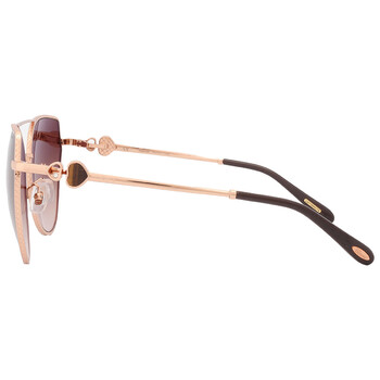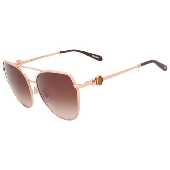 Chopard Sunglasses. Series number: SCHC87S. Color code: 08FC. Shape: Butterfly. Lens Width: 60 mm. Lens Bridge: 17 mm. Arm Length: 135 mm. 100% UV protection. Non-Polarized. Frame Material: Metal. Frame Color: Rose Gold. Lenses Type: Brown Gradient. Rim Style: Full-Rim. UPC/EAN code: 190605152850. Chopard Brown Gradient Butterfly Ladies Sunglasses SCHC87S 08FC 60.