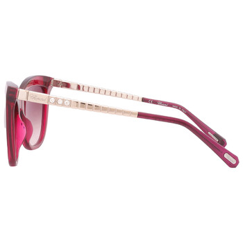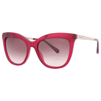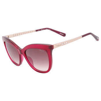 Chopard Sunglasses. Series number: SCH260S. Color code: 01BV. Shape: Cat Eye. Lens Width: 54 mm. Lens Bridge: 19 mm. Arm Length: 135 mm. 100% UV protection. Non-Polarized. Frame Material: Acetate;Metal. Frame Color: Burgundy/Rose Gold. Lenses Type: Brown Gradient. Rim Style: Full-Rim. UPC/EAN code: 190605131237. Chopard Brown Gradient Cat Eye Ladies Sunglasses SCH260S 01BV 54.