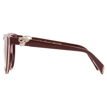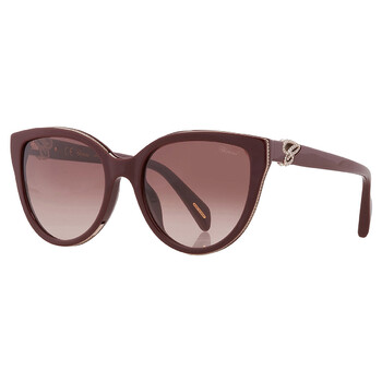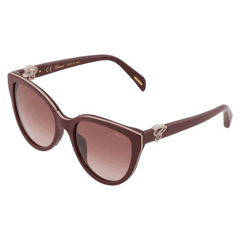 Chopard Sunglasses. Series number: SCH317S. Color code: 09FH. Shape: Cat Eye. Lens Width: 55 mm. Lens Bridge: 19 mm. Arm Length: 135 mm. 100% UV protection. Non-Polarized. Frame Material: Plastic. Frame Color: Shiny Bordeaux. Lenses Type: Brown Gradient. Rim Style: Full-Rim. UPC/EAN code: 190605360514. Chopard Brown Gradient Cat Eye Ladies Sunglasses SCH317S 09FH 55.
