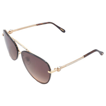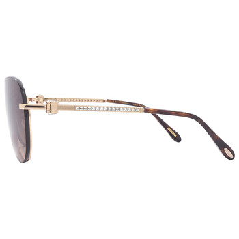 Chopard Sunglasses. Series number: SCHF10S. Color code: 300Y. Shape: Pilot. Lens Width: 63 mm. Lens Bridge: 12 mm. Arm Length: 140 mm. 100% UV protection. Non-Polarized. Frame Material: Metal. Frame Color: Gold/Brown. Lenses Type: Brown Gradient. Rim Style: Full-Rim. UPC/EAN code: 190605274965. Chopard Brown Gradient Pilot Ladies Sunglasses SCHF10S 300Y 63.