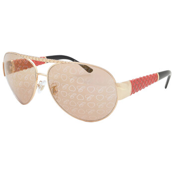 Chopard Sunglasses. Series number: SCH994O. Color code: 8FCL. Shape: Pilot. Lens Width: 63 mm. Lens Bridge: 13 mm. Arm Length: 130 mm. 100% UV protection. Non-Polarized. Frame Material: Metal. Frame Color: Shiny Gold Copper. Lenses Type: Brown Logo. Rim Style: Full-Rim. UPC/EAN code: 883663697479. Chopard Brown Logo Pilot Ladies Sunglasses SCH994O 8FCL 63.