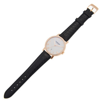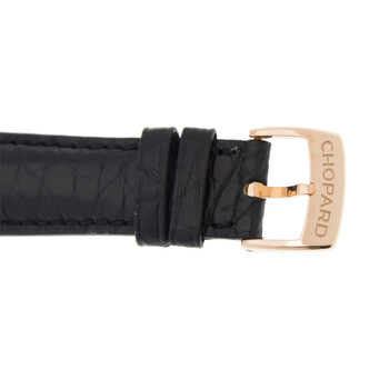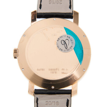 18kt rose gold case with a brown leather strap. Fixed 18kt rose gold bezel set with diamonds (1.09ct). White dial with silver-tone hands and Roman numeral hour markers. Dial Type: Analog. Date display at the 6 o'clock position. Automatic movement with a 42-hour power reserve. Scratch resistant sapphire crystal. Solid case back. Round case shape. Case size: 40 mm. Tang clasp. Water resistant at 30 meters / 100 feet. Functions: date, hour, minute, second. Classic Series. Luxury watch style. Watch label: Swiss Made. Item Variations: 171278 5004, 171278.5004, 1712785004. Chopard Classic Automatic Diamond White Dial Men's Watch 171278-5004.