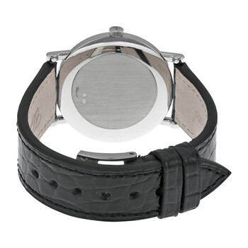 18kt white gold case with a black leather embossed strap. Fixed 18kt white gold bezel. White dial with white gold hands and romna numeral hour markers. Dial Type: Analog. Manual movement with a 42 hour power reserve. Scratch resistant sapphire crystal. Pull / push crown. Solid case back. Case diameter: 33.6 mm. Case thickness: 5.7 mm. Round case shape. Band width: 20.3 mm. Band length: 8 inches. Tang clasp. Water resistant at 30 meters / 100 feet. Functions: hour, minute. Luxury watch style. Watch label: Swiss Made. Chopard Classique Homme White Dial 18kt White Gold Black leather Ladies Watch P163154-1001.