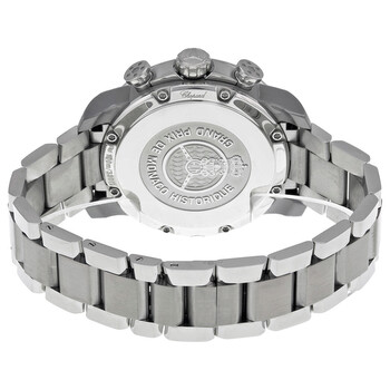Grey titanium case with a grey titanium bracelet. Fixed tachymeter scale titanium bezel with a black top ring. White dial with luminous hands and index hour markers. Minute markers around the outer rim. Dial Type: Analog. Luminescent hands and markers. Date display at the 3 o'clock position. Chronograph - three sub-dials displaying: 60 second, 30 minute and 12 hour. ETA-Valgranges Caliber A07.211 Automatic movement, based upon ETA 7750, containing 25 Jewels, bitting at 28800 vph, and has a power reserve of approximately 46 hours. Scratch resistant sapphire crystal. Screw down crown. Solid case back. Round case shape, case size: 44.5 mm, case thickness: 13.9 mm. Deployment clasp. Water resistant at 100 meters / 330 feet. Functions: chronograph, date, hour, minute, second, tachymeter, chronometer. Grand Prix De Monaco Historique Chronograph Series. Luxury watch style. Watch label: Swiss Made. Item Variations: 158570 3001, 158570.3001, 1585703001. Chopard Grand Prix de Monaco Historique Chronograph Men's Watch 158570-3001.