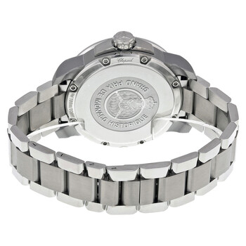 Grey titanium case with a grey titanium bracelet. Fixed grey titanium bezel with an inlaid black aluminium ring. Silver and yellow dial with luminous hands and index / small Arabic numeral hour markers. An Arabic numeral appears at the 12 o'clock position. Minute markers around the outer rim. Dial Type: Analog. Date display at the 3 o'clock position. Power reserve indicator. ETA-Valgranges caliber A07.211 automatic movement, based upon ETA 7750, containing 25 Jewels, bitting at 28800 vph, and has a power reserve of approximately 46 hours. Scratch resistant sapphire crystal. Screw down crown. Solid case back. Round case shape. Case size: 44.5 mm. Case thickness: 13.9 mm. Band width: 22 mm. Band length: 8 inches. Deployment clasp. Water resistant at 100 meters / 330 feet. Functions: date, hour, minute, second, power reserve indicator, chronometer. Grand Prix De Monaco Historique Power Control Series. Luxury watch style. Watch label: Swiss Made. Item Variations: 158569 3001, 158569.3001, 1585693001. Chopard Grand Prix de Monaco Historique Power Control Men's Watch 158569-3001.