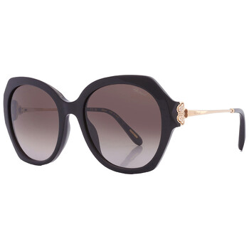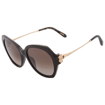Chopard Sunglasses. Series number: SCH354S. Color code: 700K. Shape: Butterfly. Lens Width: 54 mm. Lens Bridge: 19 mm. Arm Length: 135 mm. 100% UV protection. Non-Polarized. Frame Material: Acetate. Frame Color: Shiny Black. Lenses Type: Grey Gradient. UPC/EAN code: 190605470541. Chopard Grey Gradient Butterfly Ladies Sunglasses SCH354S 700K 54.