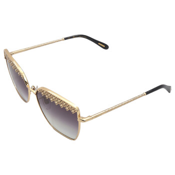 Chopard Sunglasses. Series number: SCHF76S. Color code: 0300. Shape: Butterfly. Lens Width: 59 mm. Lens Bridge: 15 mm. Arm Length: 140 mm. 100% UV protection. Non-Polarized. Frame Material: Metal. Frame Color: Shiny Rose Gold. Lenses Type: Grey Gradient. Rim Style: Full-Rim. UPC/EAN code: 190605342107. Chopard Grey Gradient Butterfly Ladies Sunglasses SCHF76S 0300 59.