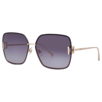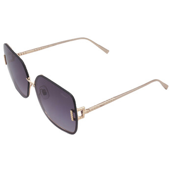 Chopard Sunglasses. Series number: SCHF72M. Color code: 0300. Shape: Square. Lens Width: 62 mm. Lens Bridge: 13 mm. Arm Length: 135 mm. 100% UV protection. Non-Polarized. Frame Material: Metal. Frame Color: Shiny Rose Gold. Lenses Type: Grey Gradient. Rim Style: Full-Rim. UPC/EAN code: 190605346075. Chopard Grey Gradient Square Ladies Sunglasses SCHF72M 0300 62.