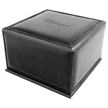 Silver-tone stainless steel case with a silver-tone stainless steel bracelet. Fixed silver-tone 32 diamond set bezel. White with 5 floating diamonds dial with blue sword-shaped hands and Roman numerals mark the 3, 6, 9 and 12 o'clock positions hour markers. Minute markers around an inner ring. Dial Type: Analog. Quartz movement. Scratch resistant sapphire crystal. Blue sapphire cabochon crown. Square case shape, case size: 26 mm, case thickness: 8.5 mm. Band length: 7 inches. Hidden deployment clasp. Water resistant at 30 meters / 100 feet. Functions: hours/ minutes/ seconds. Additional Info: sapphire cabochon crown; 4 sapphire cabochons on lugs. Happy Sport Square Series. Luxury watch style. Watch label: Swiss Made. Item Variations: 27/8895-23-11. Chopard Happy Sport Diamond Steel Mini Ladies Watch 27/8895-23/11.