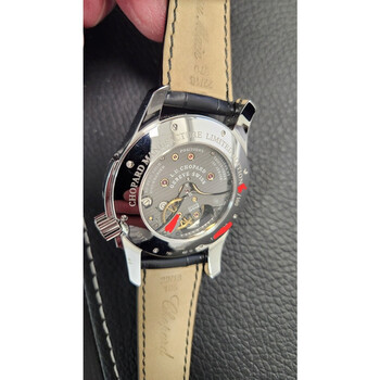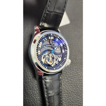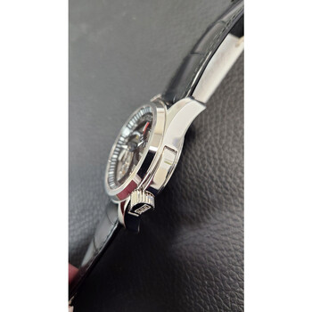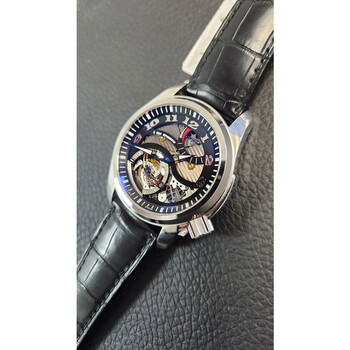 18kt white gold case with a black crocodile leather strap. Fixed 18kt white gold bezel. Black dial with blue hands and Arabic numeral hour markers. Minute markers around the outer rim. Dial Type: Analog. Luminescent hands and markers. One subdial displaying: small second. Chopard Calibre L.U.C. 4TBST hand wind movement with a 216-hour power reserve. Scratch resistant sapphire crystal. Transparent case back. Round case shape, case size: 42 mm, case thickness: 13.38 mm. Fold over clasp with a safety release. Water resistant at 30 meters / 100 feet. Functions: tourbillon, hour, minute, small second, power reserve indicator, chronometer. Additional Info: this is a brand new unworn watch, comes in the standard chopard box, no papers. L.u.c. Tourbillon Series. Luxury watch style. Watch label: Swiss Made. Chopard L.U.C. Tourbillon Hand Wind Chronometer Black Dial Men's Watch 161917-1001.