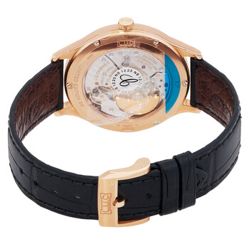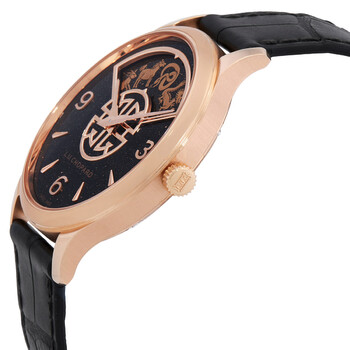 18kt rose gold case with a black alligator leather strap. Fixed 18kt rose gold bezel. Black dial with rose gold hands and index-Arabic numeral hour markers. Dial Type: Analog. One subdial displaying: animal zodiac. Chopard Calibre L.U.C 96.29-L Automatic movement, containing 29 Jewels, bitting at 28800 vph, and has a power reserve of approximately 65 hours. Scratch resistant sapphire crystal. Transparent case back. Round case shape, case size: 40 mm. Tang clasp. Water resistant at 30 meters / 100 feet. Functions: GMT, hour, minute. L.u.c Series. Luxury watch style. Watch label: Swiss Made. Chopard L.U.C XP Urushi Spirit Automatic Black Dial Men's Watch 161980-5001.