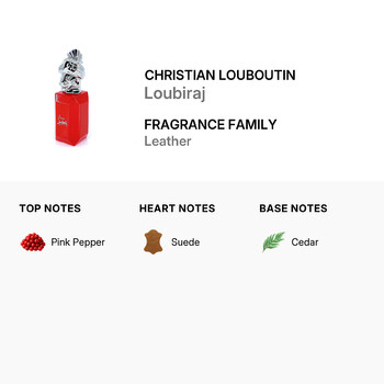 Loubiraj belongs to the Leather fragrance family, featuring a rich and elegant scent profile. It opens with a spicy touch of pink pepper that instantly awakens the senses. At the heart, smooth suede adds a velvety depth, while the base note of warm cedar wood grounds the fragrance in timeless luxury. The result is a scent that is both chic and unforgettable.