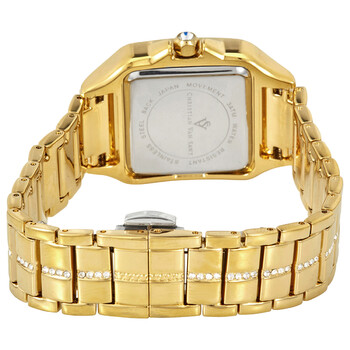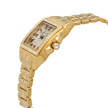 Yellow gold-tone brass case with a yellow gold-tone stainless steel bracelet set with crystals. Fixed yellow gold-tone brass bezel set with crystals. Gold (crystal pave) dial with luminous black hands and Roman numeral hour markers. Dial Type: Analog. Luminescent hands. Quartz movement. Scratch resistant mineral crystal. Pull / push crown. Solid case back. Square case shape. Case size: 41 mm. Case thickness: 8.5 mm. Band width: 16 mm. Deployment clasp with a push button release. Water resistant at 30 meters / 100 feet. Functions: hour, minute, second. Splendeur Series. Fashion watch style. Christian Van Sant Splendeur Quartz Gold Dial Ladies Watch CV4621.