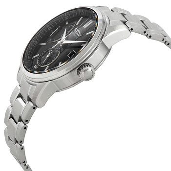 Silver-tone stainless steel case and bracelet. Fixed silver-tone stainless steel bezel. Black dial with silver-tone hands and index-Roman numeral hour markers. Arabic numeral minute markers (at 5 minute intervals). Dial Type: Analog. Date display at the 3 o'clock position. Two sub-dials displaying: 24 hour and power reserve indicator. Citizen Caliber 9184 automatic movement. Scratch resistant sapphire crystal. Transparent case back. Round case shape, case size: 40.5 mm, case thickness: 14.1 mm. Fold over clasp with a safety release. Water resistant at 100 meters / 330 feet. Functions: date, hour, minute, second, power reserve indicator. Dress watch style. Watch label: Japan Movt. Citizen Automatic Black Dial Men's Watch NB3001-53E.