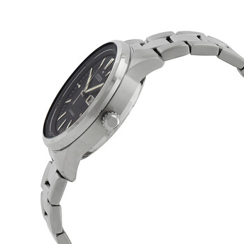 Silver-tone stainless steel case and bracelet. Fixed silver-tone stainless steel bezel. Black dial with silver-tone hands and index hour markers. Minute markers around the outer rim. Dial Type: Analog. Day of the week and date display at the 3 o'clock position. Citizen Caliber 8200 automatic movement. Scratch resistant mineral crystal. Pull / push crown. Transparent case back. Round case shape, case size: 42 mm, case thickness: 12.5 mm. Fold over clasp with a safety release. Water resistant at 100 meters / 330 feet. Functions: date, day, hour, minute, second. Casual watch style. Watch label: Japan Movt. Citizen Automatic Black Dial Men's Watch NH8400-87E.