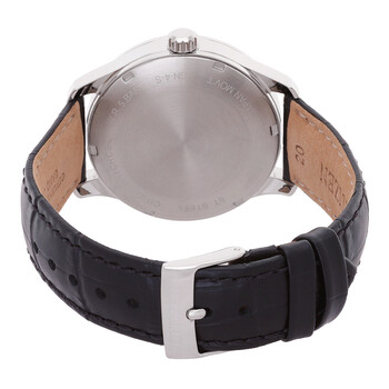 Silver-tone stainless steel case with a black leather strap. Fixed silver-tone stainless steel bezel. White dial with index-Roman numeral hour markers. Minute markers around the outer rim, roman numerals marker at the 4, 6 8, 10 and 12 o'clock position. Dial Type: Analog. Luminescent hands. Day of the week and date display at the 3 o'clock position. Citizen Caliber 8200 automatic movement. Scratch resistant mineral crystal. Pull / push crown. Solid case back. Round case shape, case size: 40 mm. Buckle clasp. Water resistant at 50 meters / 165 feet. Functions: date, day, hour, minute, second. Dress watch style. Watch label: Japan Movt. Citizen Automatic White Dial Men's Watch NH8350-08A.