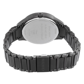 Black stainless steel case and bracelet. Fixed black stainless steel bezel. Black dial with gold-tone hands. Dial Type: Analog. Luminescent hands. Date display at the 3 o'clock position. Citizen Caliber Eco-Drive J810 eco-drive movement. Scratch resistant sapphire crystal. Pull / push crown. Solid case back. Round case shape, case size: 37 mm. Buckle clasp. Water resistant at 50 meters / 165 feet. Functions: date, hour, minute, second, solar-powered. Casual watch style. Watch label: Japan Movt. Citizen Black Dial Watch FE6107-68W.