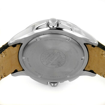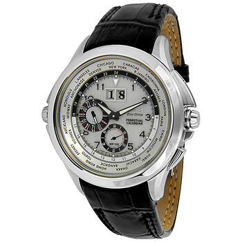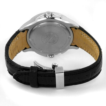 Stainless steel case. Black leather strap. Silver dial. Date displays at 12 o'clock position. Perpetual calendar. 12/24 hour timekeeping. Mineral crystal. Case diameter 48mm. Case thickness 13mm. Eco-drive movement. Water resistant at 100 meters (330 feet). Citizen Calibre 3150 Men's Watch BT0050-09A