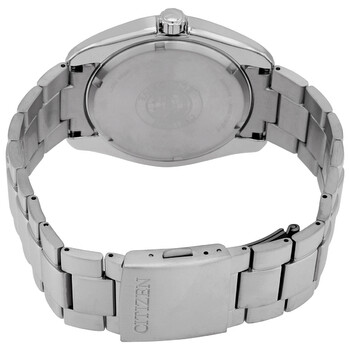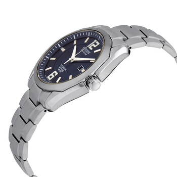 Grey titanium case and bracelet. Fixed grey titanium bezel. Blue dial with luminous silver-tone hands and index hour markers. Arabic numerals mark the 6 and 12 o'clock positions. Minute markers around the outer rim. Dial Type: Analog. Luminescent hands and markers. Date display at the 3 o'clock position. Eco-drive movement. Scratch resistant sapphire crystal. Solid case back. Round case shape. Case size: 42 mm. Case thickness: 10 mm. Band width: 22 mm. Fold over clasp. Water resistant at 100 meters / 330 feet. Functions: date, hour, minute, second. Casual watch style. Watch label: Japan Movt. Citizen Chandler Blue Dial Titanium Men's Watch BM7080-54L.